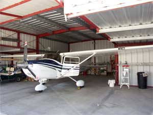 ticket. We flew commercially to Tulsa, Oklahoma, and drove about 90 miles north to Independence, Kansas, arriving there about mid-afternoon. Everyone we met, from the Enterprise-Rent-A-Car people in Tulsa to the cashier at Wal-Mart in Independence was friendly, nice and helpful. Independence only has a population of about 10,000, but they must be supported by a large outlying population as their downtown is much larger than Boulder City's, which has a population of around 15,000. They have many more shops and businesses, including the super Wal-Mart. The countryside is absolutely flat. Our flight instructor pointed out a hill to us, but all we could see in the direction he was pointing was a mound, or a hill wannabe. There are some other differences between there and home. The Albertsons store has a pet food and supply section that takes up four rows. The restaurants put bacon on everything. A salad described on the menu as "crispy greens with garden vegetables" is a bowl of lettuce with one slice of tomato. All the restaurants offer silverware wrapped in napkins; whether it's paper napkins in a fast food place or cloth napkins in a fancy place. Independence has several farm equipment dealers, including a big John Deere dealership just outside of town. Their Title companies are called Abstract companies. I'm sure there's more, but unfortunately, we couldn't spend much time in town. (We both woke up at home Monday morning with a feeling of "missing" Independence.) We did one short flight Thursday afternoon just so we could be shown that everything worked. We spent all day Friday in ground school for the new instrument panel and on Saturday we spent about three hours in the air with an instructor so Steve could get some practical use with it. I was remiss in not getting pictures of the ground school. They wouldn't let me take pictures of the factory -- something they just stopped allowing two to three weeks ago. It's too bad, because the factory was really something to see. It is HUGE. And clean. Despite all the work being done in there, it was amazingly neat. And noisy. If they'd let me take pictures, I would have made a 10-second video, so you could get a real sense of the place. We left Kansas about 7:15 (Central time) Sunday morning, stopped in Santa Fe for gas and a break, and arrived home about 2:15. The weather was absolutely beautiful, giving us a chance to really play with the new panel. We flew on autopilot the whole trip. After take-off and climbing to about 800 feet above ground, we entered our course, activated the autopilot and never touched the controls again except for landing. That's pretty exciting! This airplane can fly up to 20,000 feet above sea level. Above 12,500, we would need to use oxygen, which is on the plane. Since we didn't need to go that high, we didn't get a chance to try it out. |