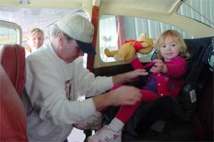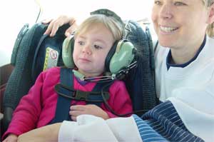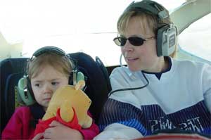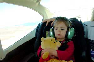 | "Oh boy, oh boy. I get to for a ride in the airplane!" | "Mom! Quit messin' with my head phones." | |
