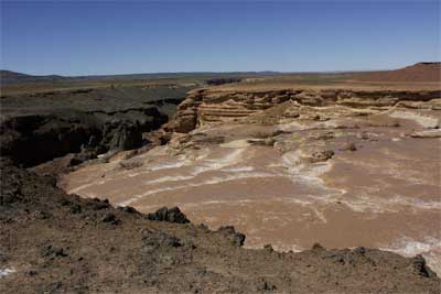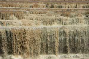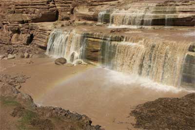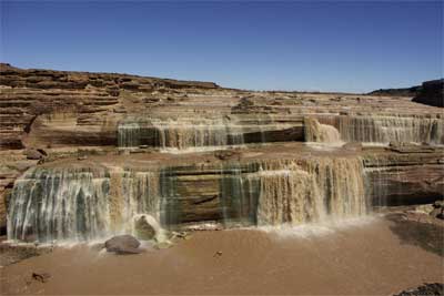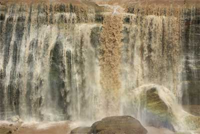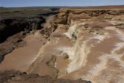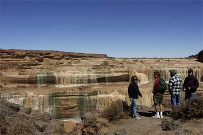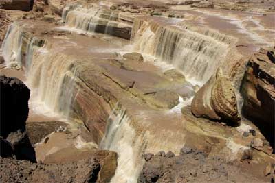 By clicking on this picture you can go to a 15 second movie of the falls.  It's a Macromedia Flash movie.  Click here to download the free Flash Player, if you don't already have it. The movie really gives you a great sense of being there because you can hear (be sure your sound is on) the roar of the falls.  You'll also hear Kevon talking about a tire he's watching going around and around a vortex.