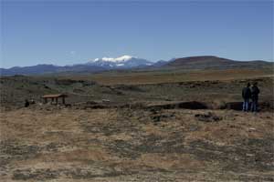 Here's a peek at the peaks of the San Francisco Mountains.  On the right is Humphrey (12,633') and on the left is Agassiz (12,356').  Humphrey is the highest peak in Arizona.