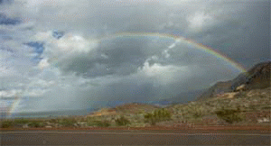 | Christmas 2004 -- We took Hailey to Lake Mead in the camper for lunch. It's not every "bedroom" that has a door in the ceiling. | A beautiful rainbow appeared while we were at the lake. | |